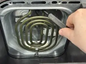 Снимите один винт 10,9 мм с передней части нагревательного элемента при помощи крестовой отвертки #2.