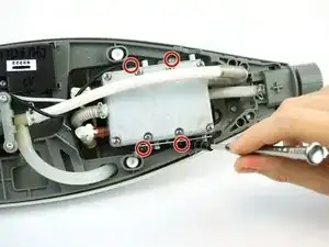 Удалите четыре винта Torx T10 длиной 16,0 мм, расположенные на задней части швабры.