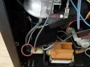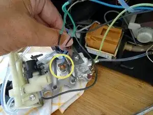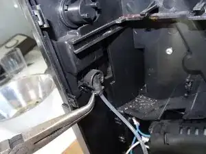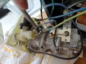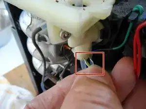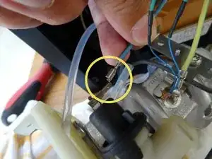 Снимите клеммник с синим проводом с нагревателя.