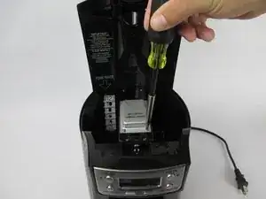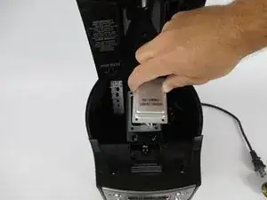 После удаления винтов аккуратно вытяните металлическую деталь из устройства. Это верхняя часть нагревателя в Brew Station.