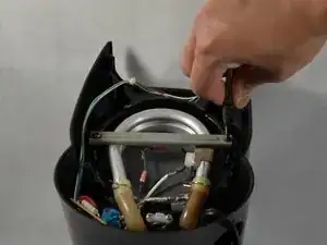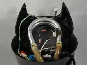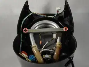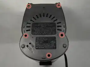 Используйте отвертку Phillips #1, чтобы удалить два винта 9 мм и три винта 11 мм на дне кофемашины, после чего снимите нижнюю пластиковую крышку.