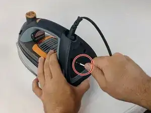 Удалите два винта, удерживающие черные провода к корпусу утюга.