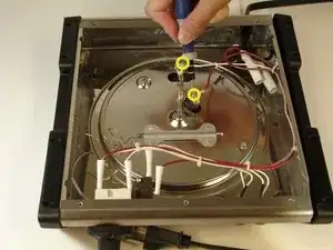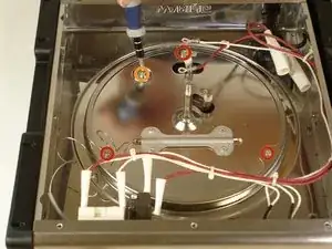 Нагревательная поверхность удерживается на месте множеством винтов вдоль кольца горелки и электрических проводов. При снятии с рамы будьте осторожны, так как железная плита довольно плотная.
