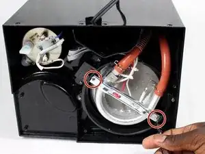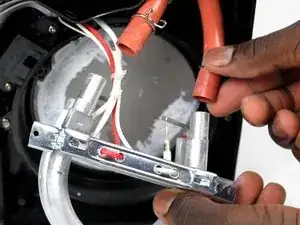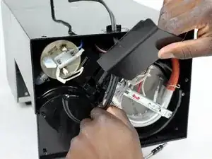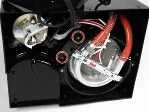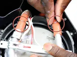 Удалите два винта Phillips 14 мм, которые удерживают нагревательную спираль на месте.
