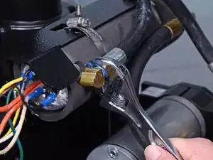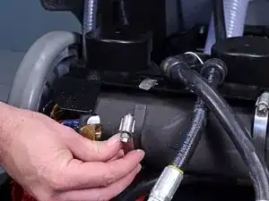 Используйте головку на 11 мм, чтобы снять гайку и шайбу, крепящие хомуты фиксации шлангов.