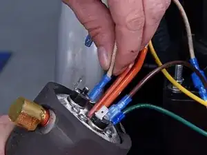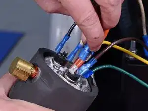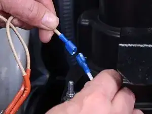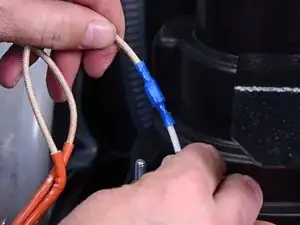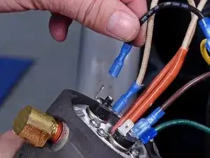 Возьмитесь за коричневый прерывный силовой провод за его синий разъём и потяните прямо от нагревателя, чтобы снять его.