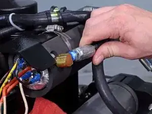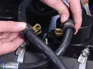 Снимите хомуты удержания шлангов с болта, на котором они были закреплены.