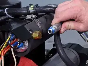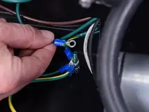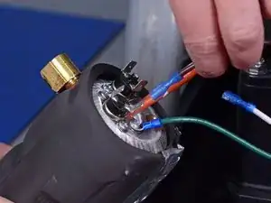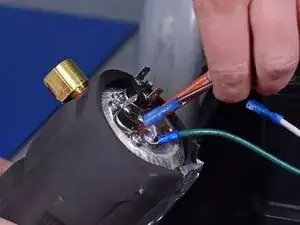 Возьмитесь за чёрный провод заземления за его синий разъём и потяните прямо от нагревателя, чтобы снять его.