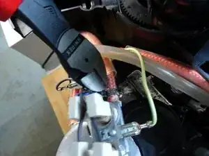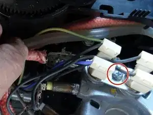 Удалите винт Phillips #2 на держателе термопереключателя.