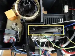 Примечание: Сопротивление одного контура нагрева примерно 70 ом; оба включённых параллельно — примерно 35 ом. Если это значение неверно, нагреватель неисправен.