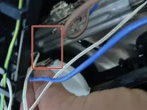 Снимите две плоские клеммы с синих и коричневых питающих проводов.