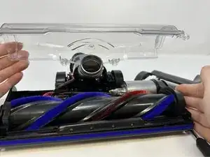 Снимите два жёстких пластиковых кожуха с узла напольной щётки.