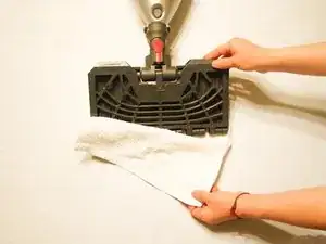Сдвиньте ткань с головки швабры.