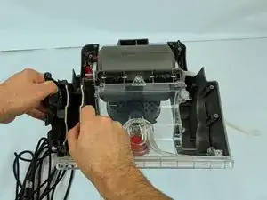 Снимите колесный узел с левой стороны пылесоса.