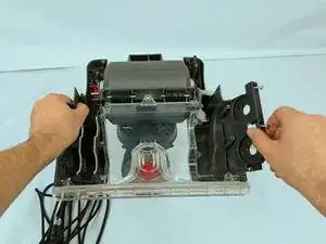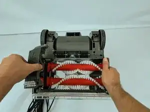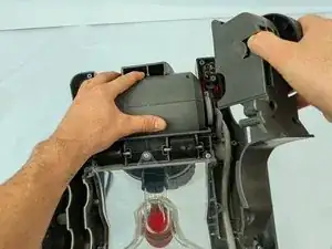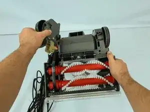 Снимите колесный узел с правой стороны пылесоса.