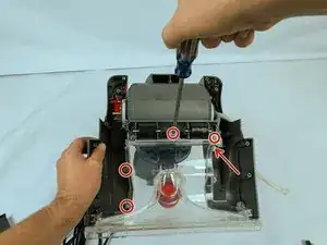 Отверткой Phillips #1 отверните пять винтов длиной 18,6 мм, крепящих насадку к пылесосу.