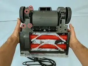 Отверткой снимите два винта длиной 18,6 мм и один винт длиной 12,6 мм с правой стороны пылесоса.