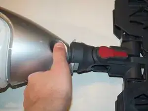 Нажмите на круглую серую кнопку освобождения рядом с точкой соединения, одновременно вытаскивая насадку.