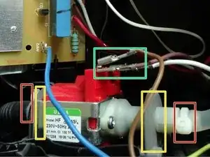 Отсоедините плоские разъемы на белых и коричневых проводах.