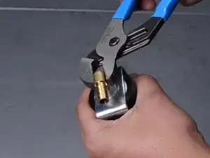Используя плоскогубцы, открутите и удалите оставшийся латунный fitting с насоса.