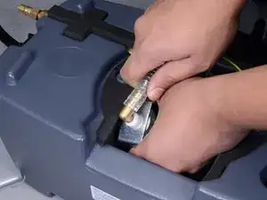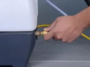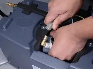 Если он все еще подключен, потяните и отключите латунное быстроразъемное соединение от корпуса экстрактора.
