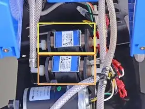 Чтобы определить, какой из двух насосов требует замены, переключите Rug Doctor в режим обивки. Не отсоединяйте быстросъёмное соединение для аксессуаров. Если вода брызгает из сопел, как в режиме для ковров, замените передний насос.