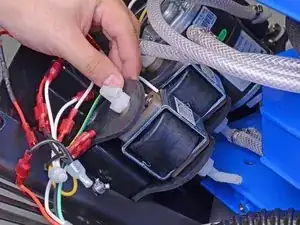 Отсоедините насос, потянув клеммы врозь. Это может потребовать значительного усилия. Тяните за клеммы, а не за провода.