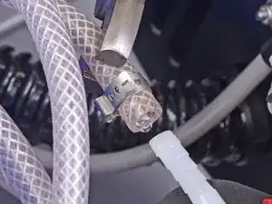 Отсоедините прозрачный шланг от задней части Rug Doctor.