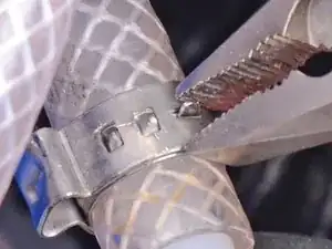 Альтернативно, используйте плоскогубцы, чтобы отогнуть маленький фиксатор на хомуте.