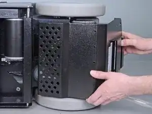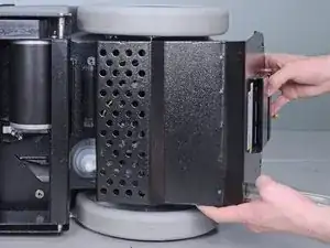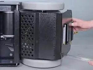 Поверните нижнюю крышку вниз, в сторону дна чистящей машины, затем потяните её прямо назад, к задней части устройства, чтобы снять.