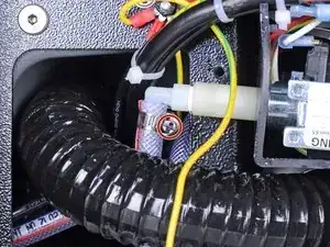 Отсоедините жёлто-зелёные коннекторы заземляющего провода, потянув их прямо в разные стороны, чтобы отключить заземляющий провод нижней крышки.