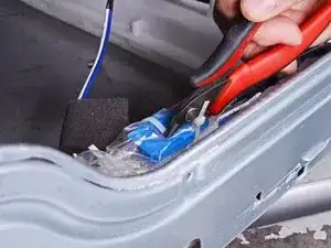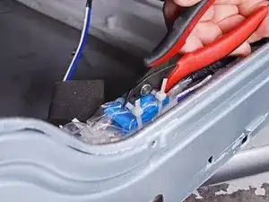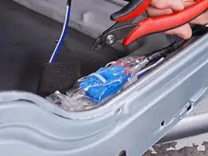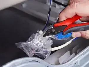 Используйте бокорезы или ножницы, чтобы срезать стяжки, фиксирующие пленку к кабелям блока насоса.