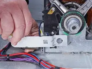 Переместите рычаг натяжного ролика в сторону сушильной машины, чтобы освободить пружину натяжения рычага.
