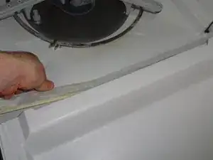 Осторожно потяните за открытый край уплотнителя, чтобы отделить его от нижнего края двери и направить к тазу посудомоечной машины.