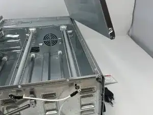 Снимите панель со стороны управления. Для снятия толкните её вперед в сторону передней панели управления, чтобы освободить защелки из корпуса. Отогните боковую панель, когда защелки визуально выйдут из своих пазов в корпусе.