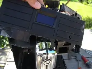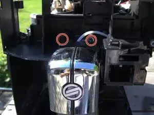 Носик для кофе прикреплён сверху двумя винтами Torx T10. Выверните их.