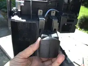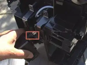 Впускной шланг присоединён к диспенсеру для кофе хомутом. Используйте пинцет, чтобы вынуть прищепку и снять трубку.