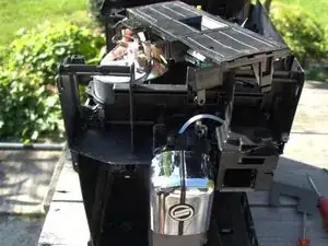 Внутренняя часть носика для кофе закреплена байонетом. С приложением значительной силы сдвиньте диспенсер для кофе вверх, затем вытащите его из машины.