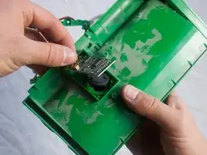 Извлеките плату из её посадочного места в синем корпусе щётки.