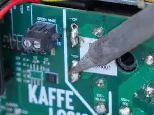 Подготовьте паяльник и отпаяйте/перепаяйте два провода трансформатора для их снятия.
