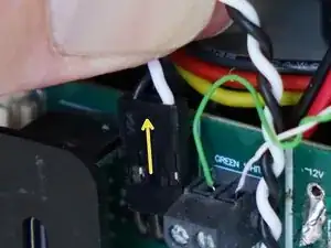 Используйте конец стяжки или очень маленькую пластиковую лопатку, чтобы открыть контакт и извлечь провода термопары. Возможно, потребуется подрезать конец стяжки, чтобы он вошёл в паз.