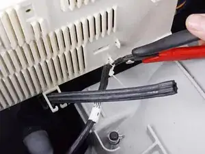 Используйте бокорезы или ножницы, чтобы перерезать стяжку, фиксирующую кабель панели управления на крышке основной платы.