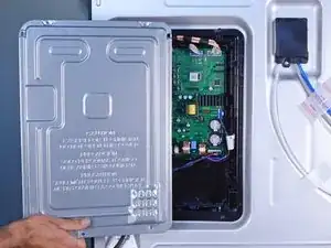 Используйте крестовую отвертку, чтобы удалить пять винтов, крепящих панель доступа к плате к задней стенке холодильника: