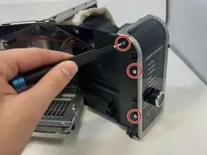 Удалите 3 винта Phillips #1 вдоль верхнего края внутри, используя отвертку. Нижние 2 винта не нужно удалять.