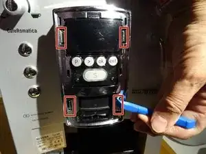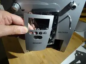 Аккуратно удалите пластиковую панель с надписью 'Nivona' с помощью пластикового инструмента для открытия.