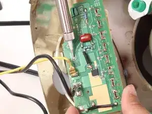 Теперь отпаяйте жёлтый провод от печатной платы. Выполняйте пайку в соответствии с этими инструкциями.