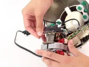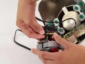 Теперь осторожно потяните белый провод, соединённый с основанием и двигателем.