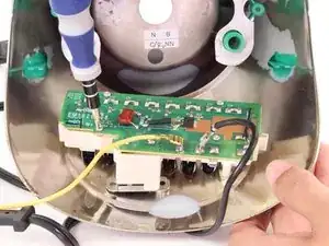 Открутите 16-мм винты, расположенные на пластиковой нижней панели основания блендера, с помощью крестовой отвёртки №2.