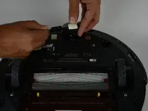 Используя палец, подталкивайте колесо снизу, удерживая крепление колеса на месте.