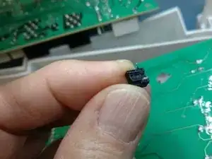 Мой прибор показал около 7 кОм при отпускании. Примечание: 7 кОм — это сопротивление от резисторов на плате, а не от переключателя. При нажатии сопротивление между пятнами припоя должно быть несколько ом или меньше. Если сопротивление намного выше, переключатель, вероятно, неисправен и его следует заменить.